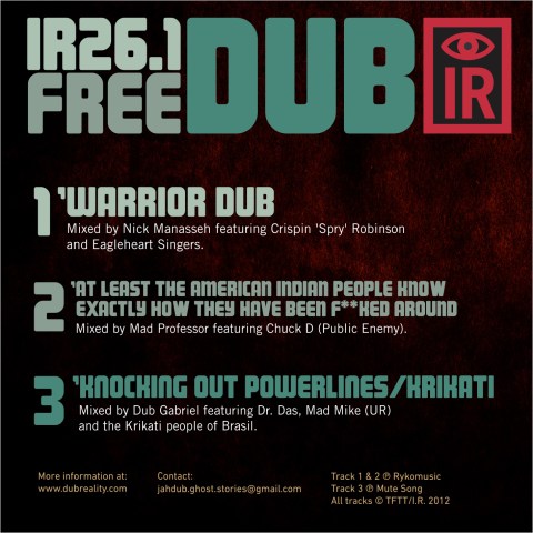 A missive for the IR release 26.1 FreeDub. You can download it HERE, but do read on with what some might call liner notes, others might call a diatribe, which we call our infomercial for dub living. Basically pulsed out to the press and available to the public in each and every download of IR26.2, giving up the history of the IR label and the why and wherefore of the musical collective known as Indigenous Resistance. As culled from the writings of Tapedave and IR’s creative liason and traveling dignitary, The Ghost.